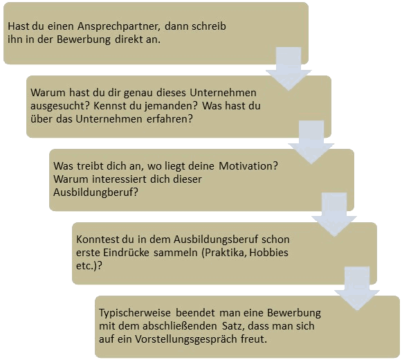 Du kannst dich von anderen abheben, indem du erklärst, warum du dich für die Ausbildung interessierst. Was treibt dich an? Wo liegt deine Motivation?